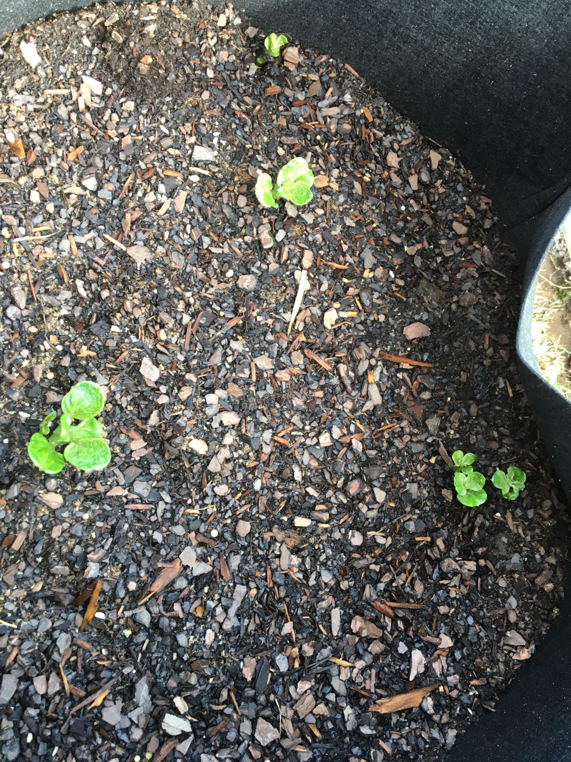 The potatoes are all doing well. It looks like most of them have sprouted. Once they are a little taller, I’ll add some more soil to the grow bags. I’ll fertilize them this weekend. At the rate Espoma recommends, I will need to apply about 1/3 of a cup of Garden-tone per grow bag.