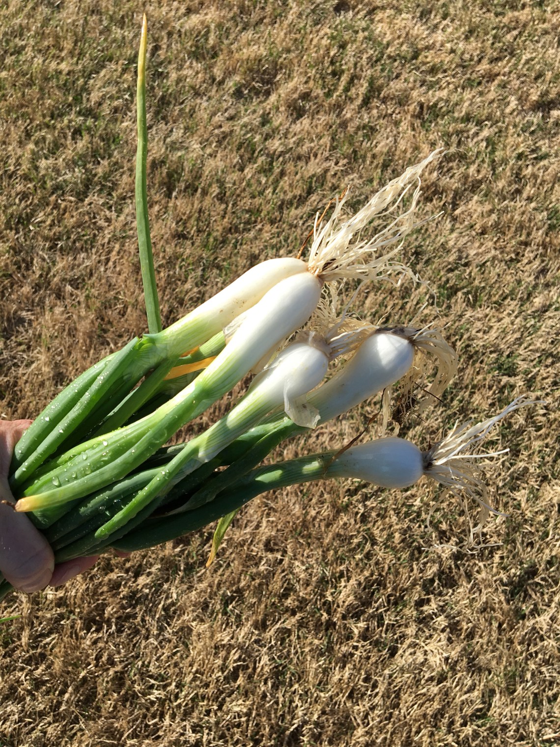 Bed 4 has tomatoes, arugula, and cucamelons. This is my first effort at growing cucamelons and in chose them just to see what they were like. I noticed that they had germinated and should have their first true leaves in a few days. I had just sowed the arugula before we left for vacation and it has sprouted nicely. Bed 5 has cucumbers, tomatoes , and dill. I have had almost 100% germination rate with the cucumbers inspire of using some old seed. Bed 6 is tomatoes and basil. I am not sure about the basil and I may not grow it again in the future. Bed 7 has leafy greens- lettuce, chard, spinach, collards, and a couple of mustards. I cut enough lettuce for a salad Saturday night and enough of the other greens to make hortopita on Sunday night. There is plenty of lettuce ready so we are set for salads for the rest of the spring. We got the twine in place for the tomato supports. I am planning to train the indeterminate tomatoes as a vine and prune all of the suckers. This will be some extra work but I am hoping I will have a better crop less-crowded beds this year. I am using plastic clips that I bought from Johnny’s and nylon twine from the hardware store. The main supports are the electrical conduit that we bought 3 years ago.